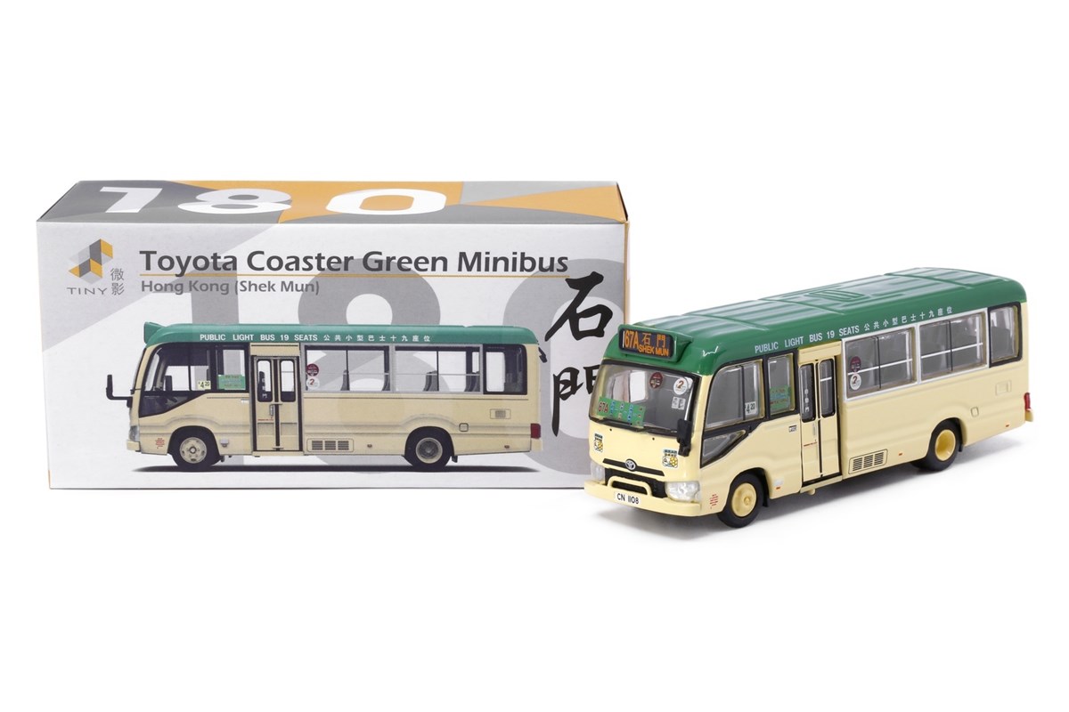 | ミニカー名 | TINY 1/76 City 180 - Toyota Coaster (B70) Green Mini Bus (19-seats) (Shek Mun) | |||